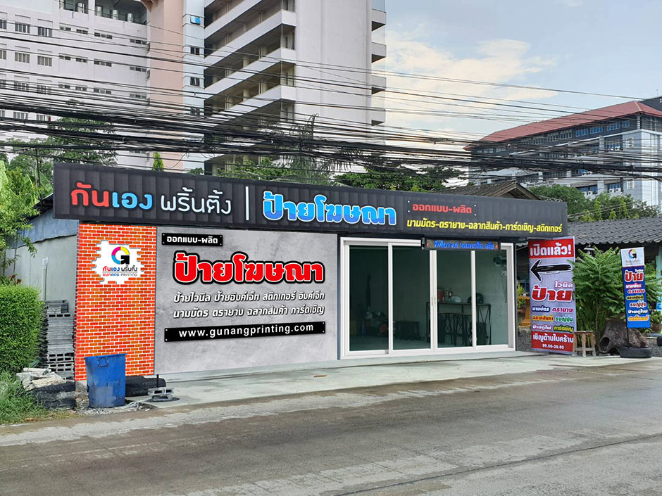 ร้าน กันเอง พริ้นติ้ง ให้บริการ ออกแบบ และ ผลิต สื่อออกบูธ , ป้ายไวนิล , ป้ายอิงค์เจ็ท , สติ๊กเกอร์อิงค์เจ็ท , ป้ายไฟ , สื่อออกบูธ , นามบัตร , ตรายาง , ฉลากสินค้า , ใบปลิว , เมนูอาหาร, ซองผ้าป่า , ซองกฐิน ร้านของเรา ตั้งอยู่ที่ คลองหก ธัญบุรี เลยประตู 3 มหาวิทยาลัย เทคโนโลยี ราชมงคล ธัญบุรี มาประมาณ 200 เมตร สอบถามเพิ่มเติม LINE : @gunang โทร.098-552-6144